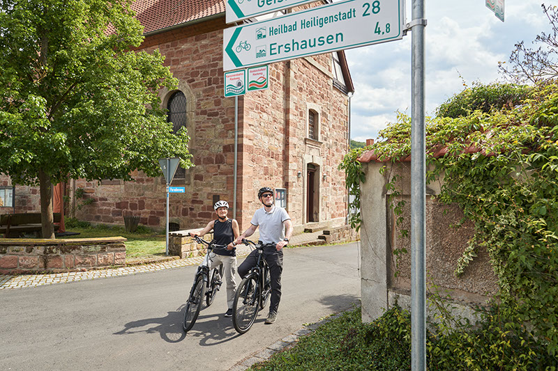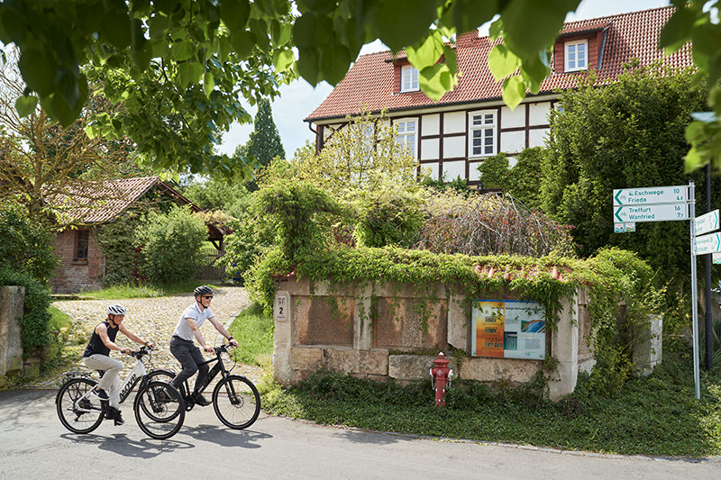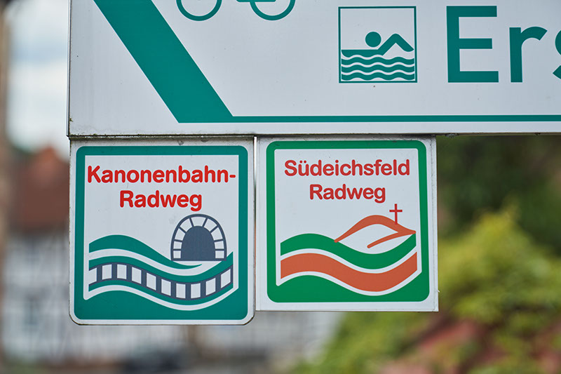 Der Radweg verläuft vom Bahnhof Heilbad Heiligenstadt am Kurpark entlang und dann aus der Stadt in Richtung Pferdebachtal. Nach einem kräftigen Anstieg verlässt man den Wald und fährt weiter nach Kalteneber. Im anschließenden Bereich von der Ortslage Kalteneber bis zum ehemaligen Bahndamm in Fürstenhagen verläuft der Weg auf der wenig befahrenden Landstraße. Auf dem Bahndamm geht es weiter in Richtung Dieterode und dann nach Rüstungen und Krombach, hier weist der Weg einige Unebenheiten auf. Auch auf dem weiteren Verlauf nach Martinfeld ist ein geländegängiges Fahrrad empfohlen. Weiter verläuft der Weg entlang der Rosoppe zunächst nach Ershausen und streift dann Geismar, bevor er über Großtöpfer zu seinem Endpunkt gelangt.Interaktive Karte