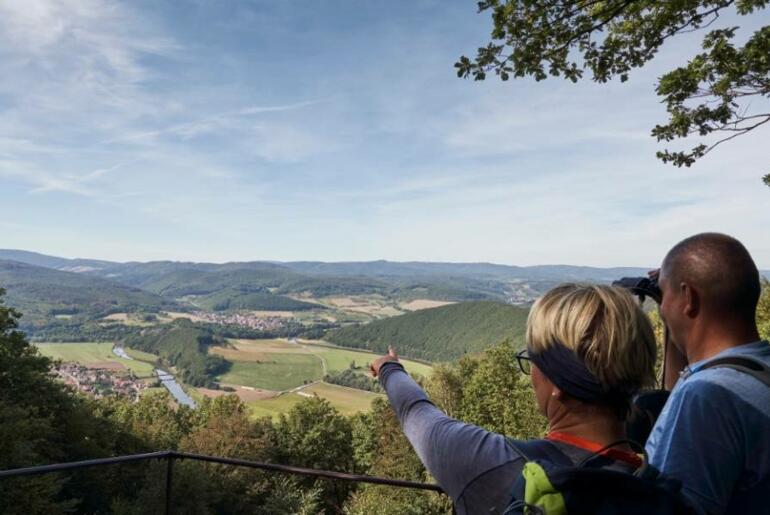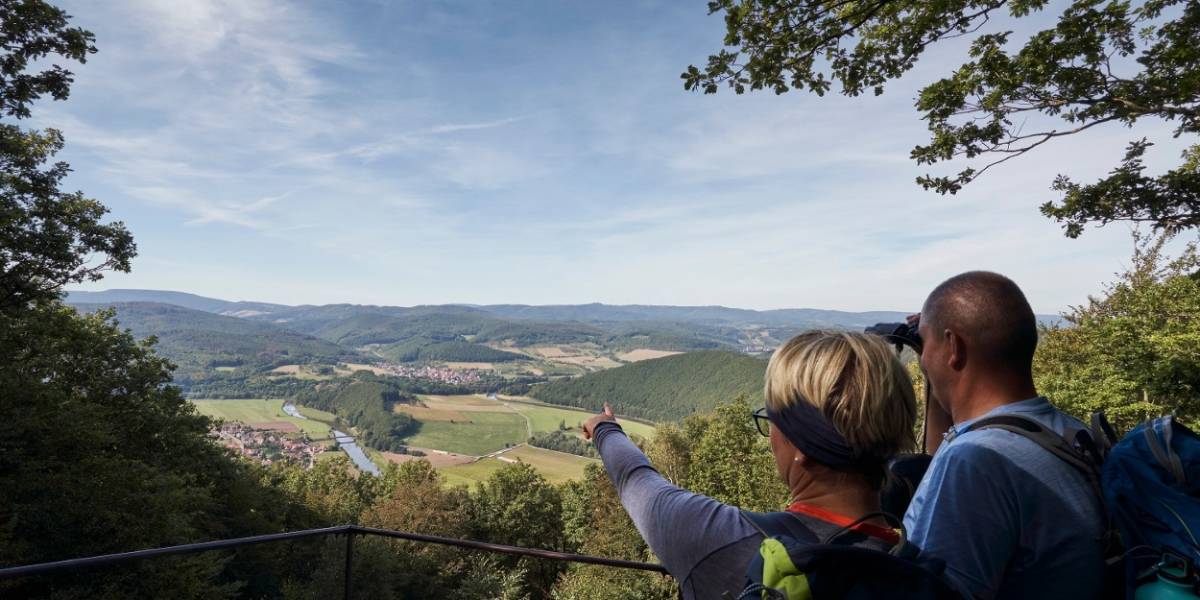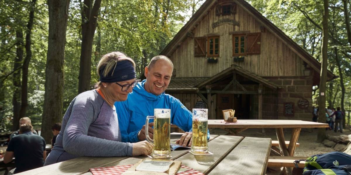 Anschließend wandern Sie weiter zur sagenumwobenen Teufelskanzel. Hier hat bereits der Teufel selbst eine Rast ein- und diesen Felsbrocken abgelegt. Sie genießen den Ausblick ins Werratal und hausgemachte Spezialitäten im urigen Waldgasthof Teufelskanzel.