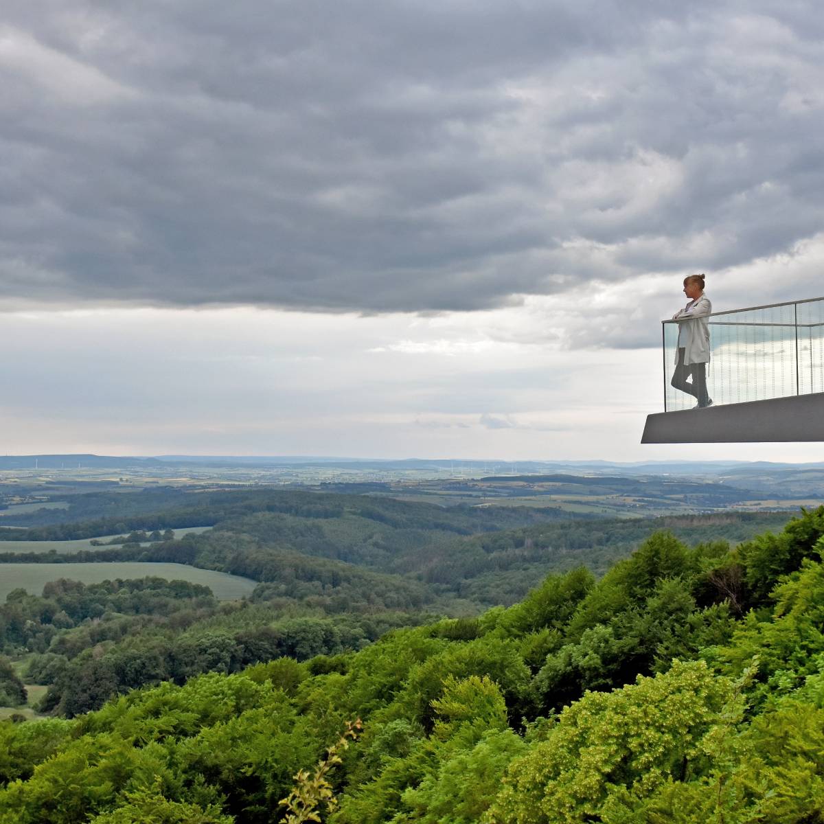 Treffpunkt für Ihre Wanderung ist der Parkplatz am Skywalk Sonnenstein. Genießen Sie die grenzenlose Aussicht von dieser besonderen Aussichtsplattform ins Untereichsfeld, zum Kyffhäuser, Ohmgebirge und Südharz.